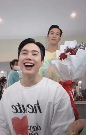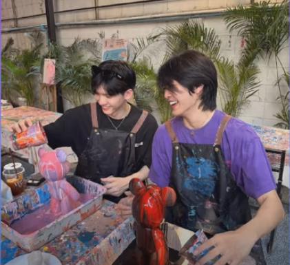 Dunk et Joong ont passé la journée ensemble et Dunk a invité Joong au restaurant. Où il lui a offert des macarons.